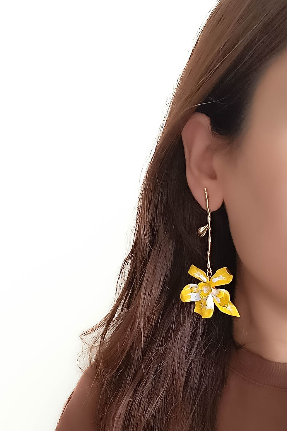 Sarı Çiçek Sallantılı Yaprak Detaylı Marka Model Vintage Uzun Büyük Küpe